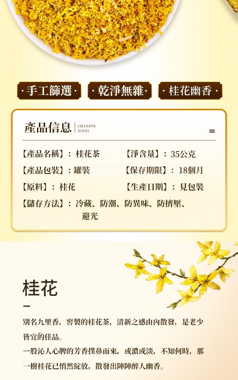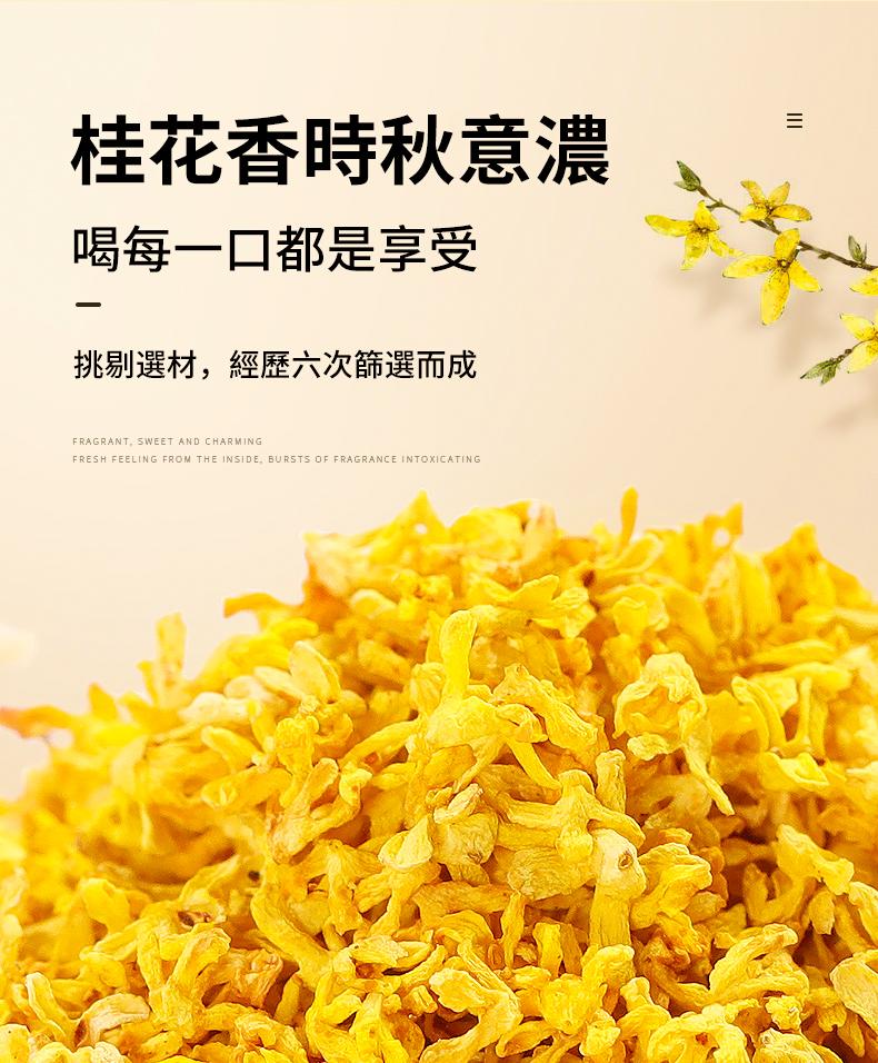 半小時前【年終超狂特惠 買1送1】台灣製作,無農藥,無添加劑,無熏硫,自然農法種植,美容養顏,緩解腸胃不適,消除口臭,綠色天然的養生佳品。一罐可沖泡50次。【下單贈送花茶過濾球】 - 【買二送二,均價374】今年新貨,四瓶桂花乾-NT$ 1499