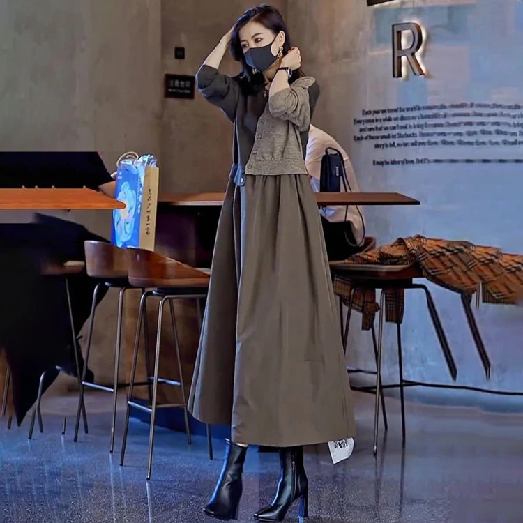 4分鐘前【限時活動 貨到付款】針織假兩件連衣裙,上身減齡顯氣質! - 一入組優惠價!NT1390