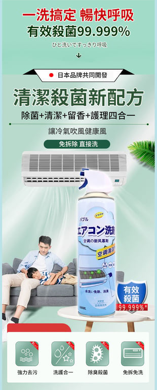 半小時前【清新夏日,從清潔開始】免拆洗空調冷氣機清潔劑深層潔淨,無需折卸空调快速分解塵垢異味 - 【買二送三】5入組-NT$1198